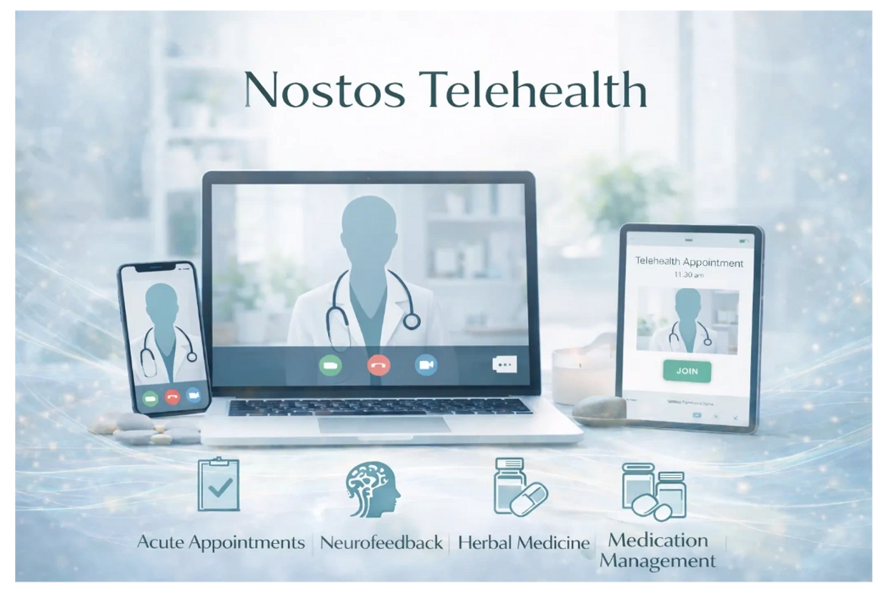 Nostos Telehealth provides HIPAA-compliant medical services delivered remotely by a licensed naturopathic primary care provider in Oregon. Telehealth visits are used when clinically appropriate and medically necessary, and are integrated with in-person care when required.